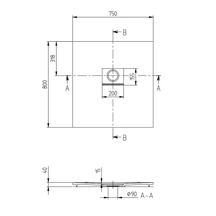 Villeroy & Boch Squaro Infinity Душевой поддон 80х75х4 см, Quaryl®, цвет: Anthracite UDQ8075SQI2IV1S