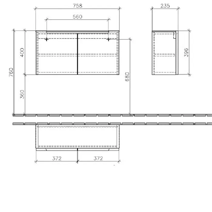Villeroy & Boch Subway 2.0 Тумба подвесная под двойную рак., 128,7x59x49 см, цвет: белый A91700DH