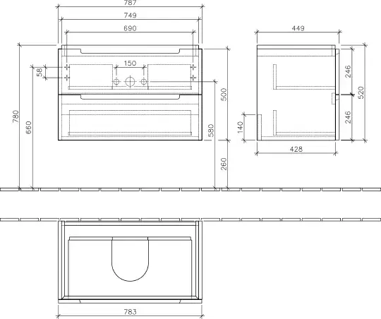 Villeroy & Boch Subway 2.0 Тумба подвесная под раковину, 78,7x59x44,9 см, цвет: белый A91400DH
