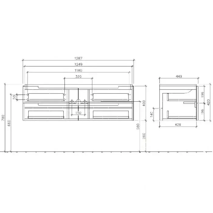 Villeroy & Boch Subway 2.0 Тумба подвесная под двойную рак., 128,7x59x49 см, цвет: белый A91700DH