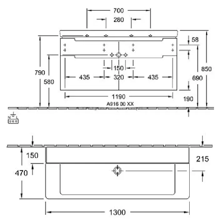 Villeroy & Boch Subway 2.0 Тумба подвесная под двойную рак., 128,7x59x49 см, цвет: белый A91700DH