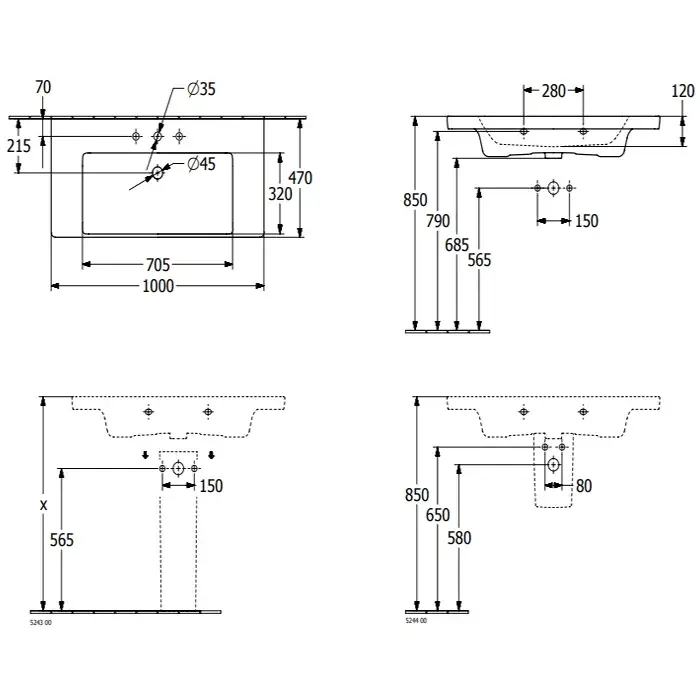 Villeroy & Boch Subway 3.0 Раковина 100х47х16,5 см, 1 отв., подвесная, цвет: альп. белый 4A70A2R1