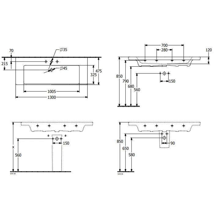 Villeroy & Boch Subway 3.0 Раковина 130х47х17 см, 1 отв., подвесная, цвет: белый камень 4A70D2RW