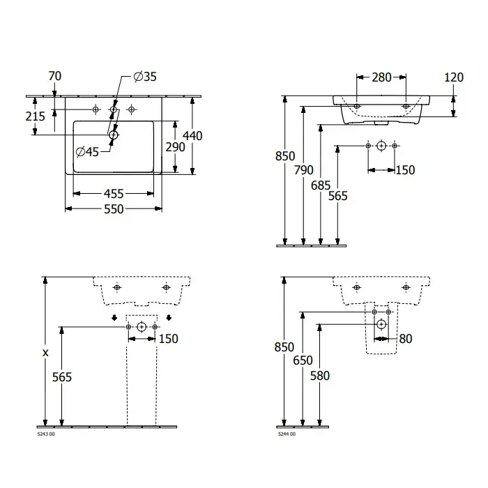 Villeroy & Boch Subway 3.0 Раковина 55х44х16,5 см, без отв., подвесная, цвет: альп. белый 4A70F6R1