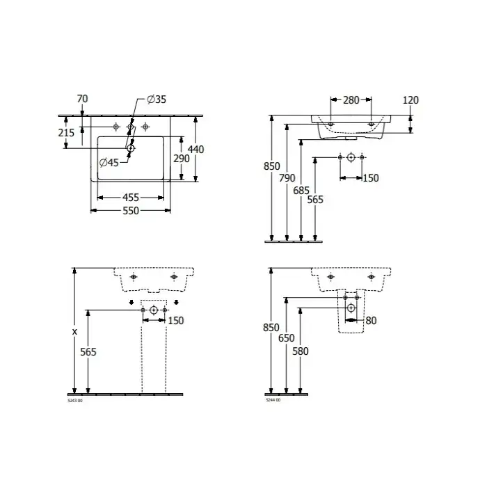 Villeroy & Boch Subway 3.0 Раковина 55х44х16,5 см, без отв., подвесная, цвет: альп. белый 4A70F601