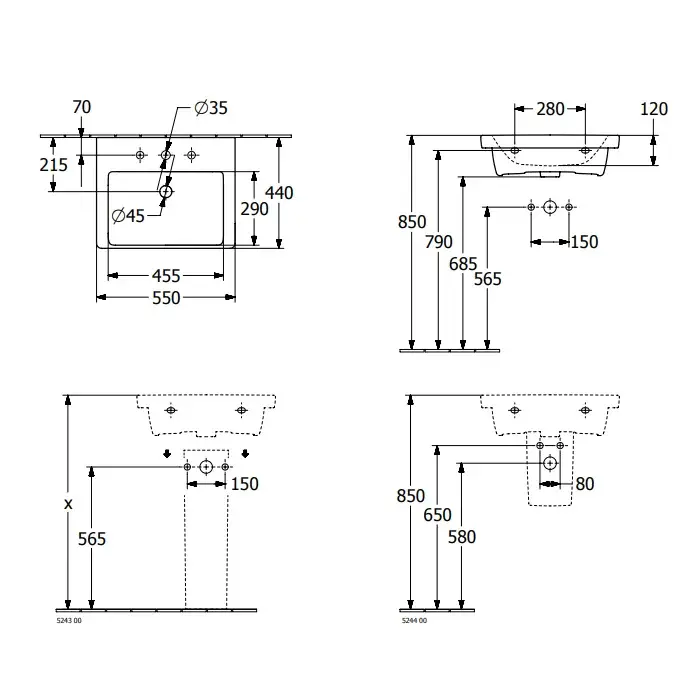 Villeroy & Boch Subway 3.0 Раковина 55х44х16,5 см, без отв., подвесная, цвет: альп. белый 4A70F6R1