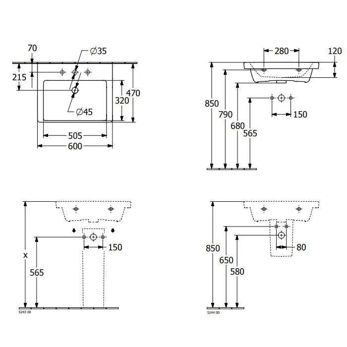 Villeroy & Boch Subway 3.0 Раковина 55х44х16,5 см, без отв., подвесная, цвет: альп. белый 4A70F6R1