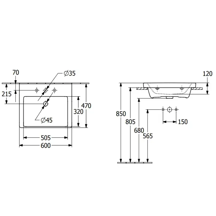 Villeroy & Boch Subway 3.0 Раковина 55х44х16,5 см, без отв., подвесная, цвет: альп. белый 4A70F601