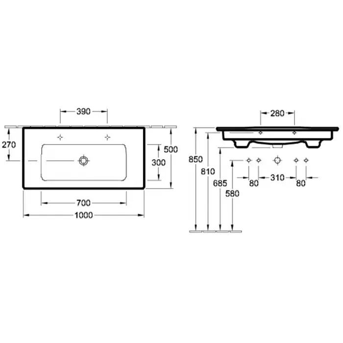 Villeroy & Boch Venticello Раковина, 2 отверстия под смеситель, 100x50 см, цвет: белый 4104AK01