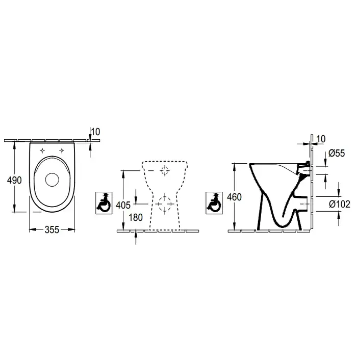Villeroy & Boch Vicare Унитаз 36х49х46 см, напольный, DirectFlush, цвет: альпийский белый 4683R0R1