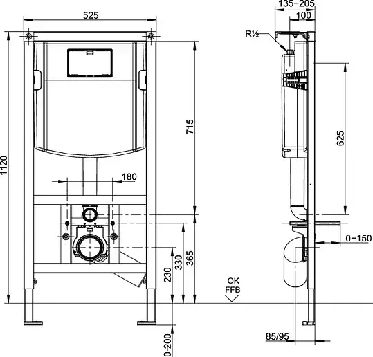 Villeroy&Boch ViConnect Инсталляция 52.5х13.5х112см., для подвесного унитаза