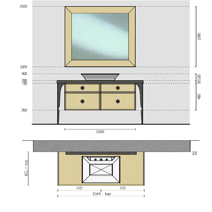 VITAGE milldue edition Majestic Топ стеклянный 1544х600х48 мм., с 1 отв. для рак. без отв. под смес., LED подсв. отделка зеркало Bronzo acidato/b.crom