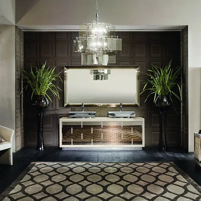 VITAGE milldue edition Ritz Тумба под 2 раковины 2090х548х741 мм, напольная, 4 ящика, цоколь сталь, рама глянц лак Mandorla, фасад стекло Golden crash