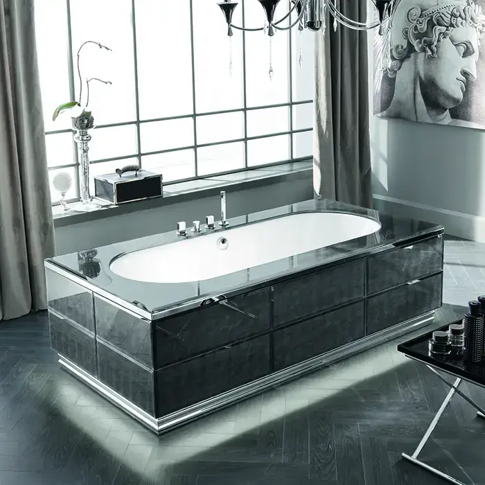 VITAGE milldue edition Hilton Топ стеклянный для ванны 2005х1005х12 мм., отделка стекло Alligator silver