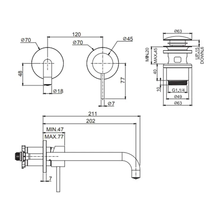 Внешняя часть встраиваемого смесителя для раковины с изливом CARLO FRATTINI SPILLO STEEL F