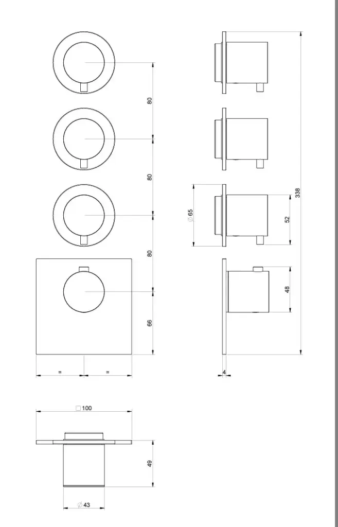 Внешняя часть встраиваемого термостата для душа Gessi GESSI 316