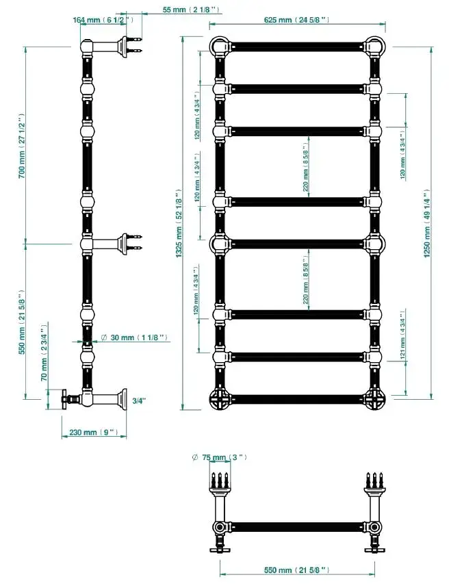 Водяной полотенцесушитель THG Grand central Black Onyx U9M-TWF8H2
