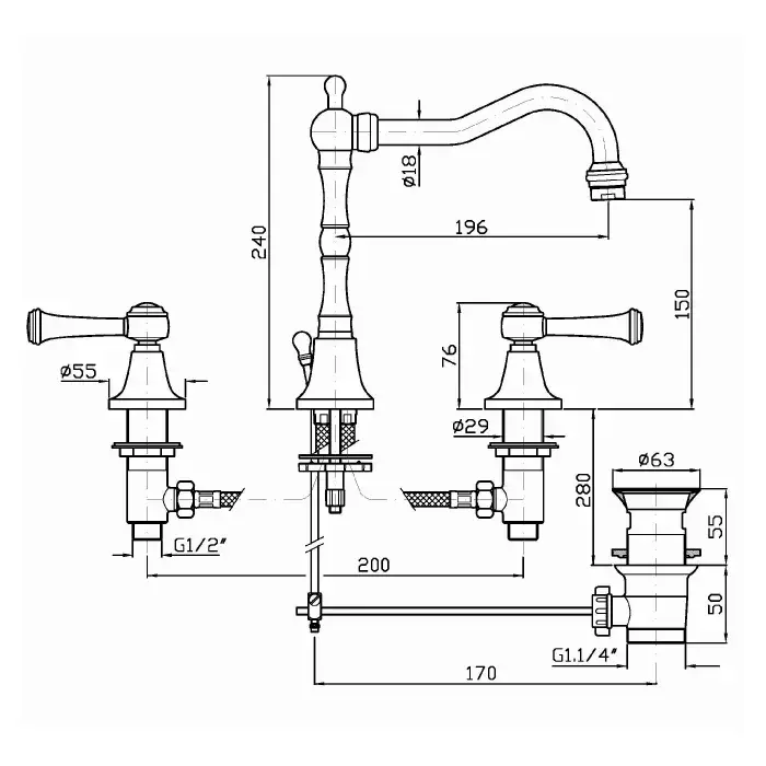 Zucchetti Agora Classic Cмеситель для раковины на 3 отв., с аэратором, цвет: хром ZAL405