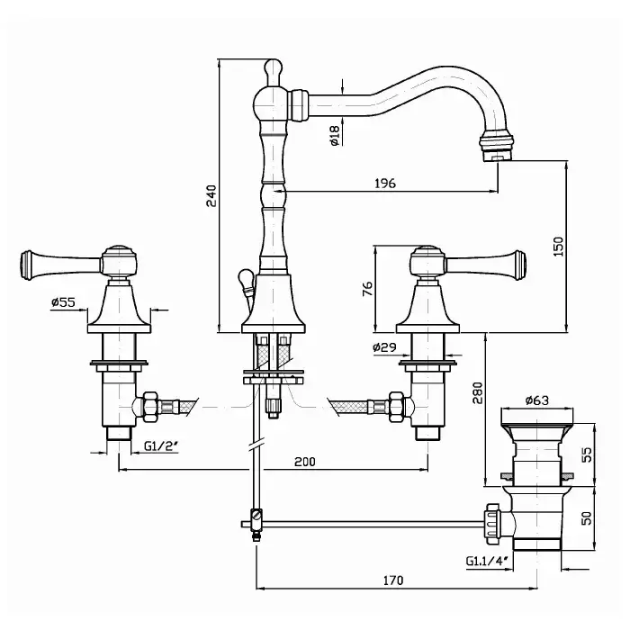 Zucchetti Agora Classic Cмеситель для раковины, с аэратором, на 3 отв., цвет: хром ZAM405