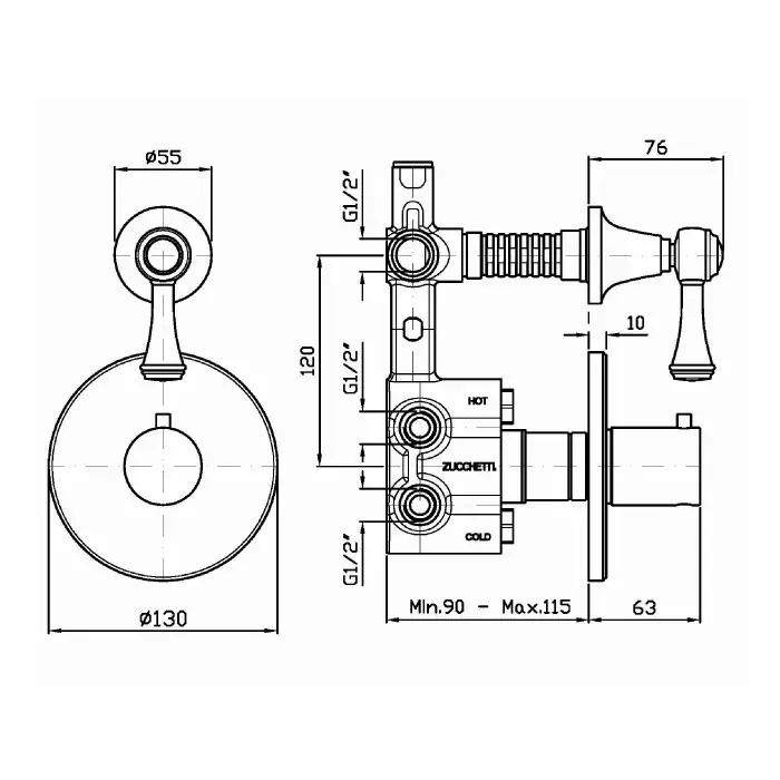 Zucchetti Agora Classic Смеситель для душа встроенный, термостат, с дивертором, цвет: хром ZAM646