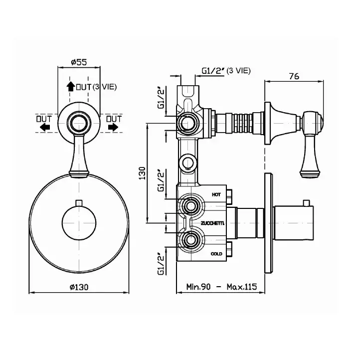 Zucchetti Agora Classic Смеситель для душа встроенный, терм., с 3-мя зап. клап., цвет: хром ZAM661