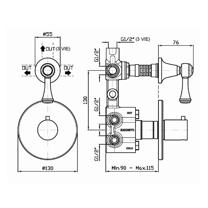 Zucchetti Agora Classic Смеситель для душа встроенный, терм., с 3-мя зап. клап., цвет: хром ZAM661