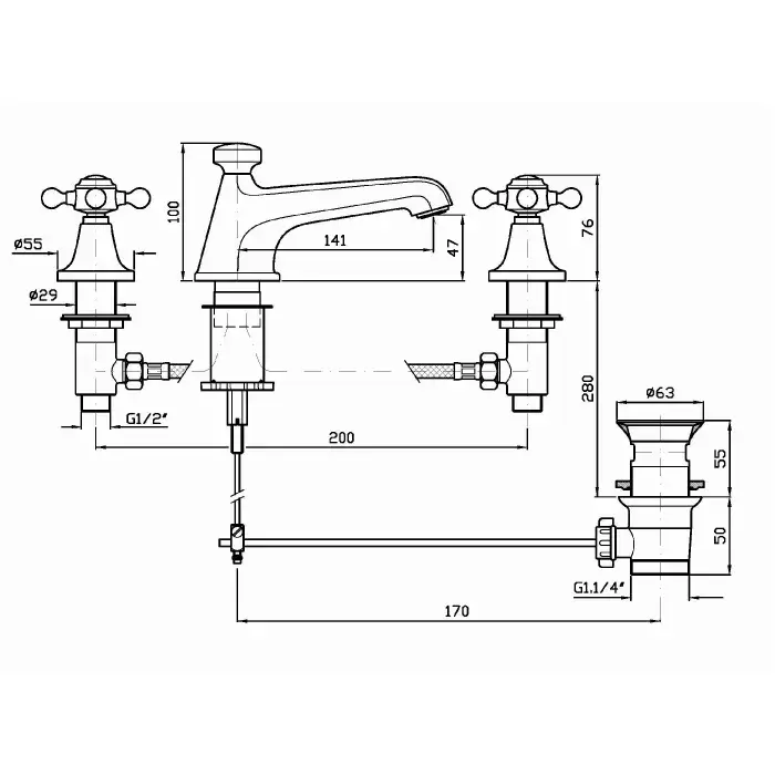 Nicolazzi Agora Смеситель для раковины на 3 отв. излив 17.6см., цвет: черный матовый