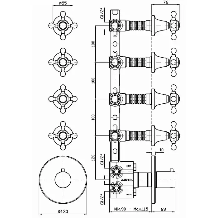 Zucchetti Agora Смеситель для душа встроенный, термостат, с 4-мя зап. клапанами, цвет: хром ZAG662