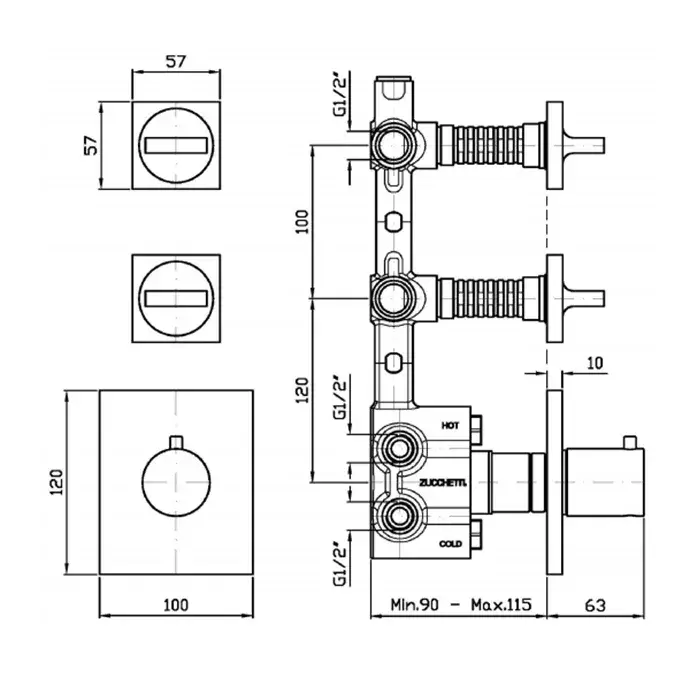 Zucchetti Aguablu Смеситель для душа встроенный, термостат, с запорным вентилем, цвет: хром ZA5659