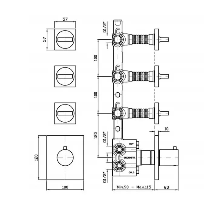 Zucchetti Aguablu Смеситель для душа встроенный, термостат, 4 ручки, цвет: хром ZA5662