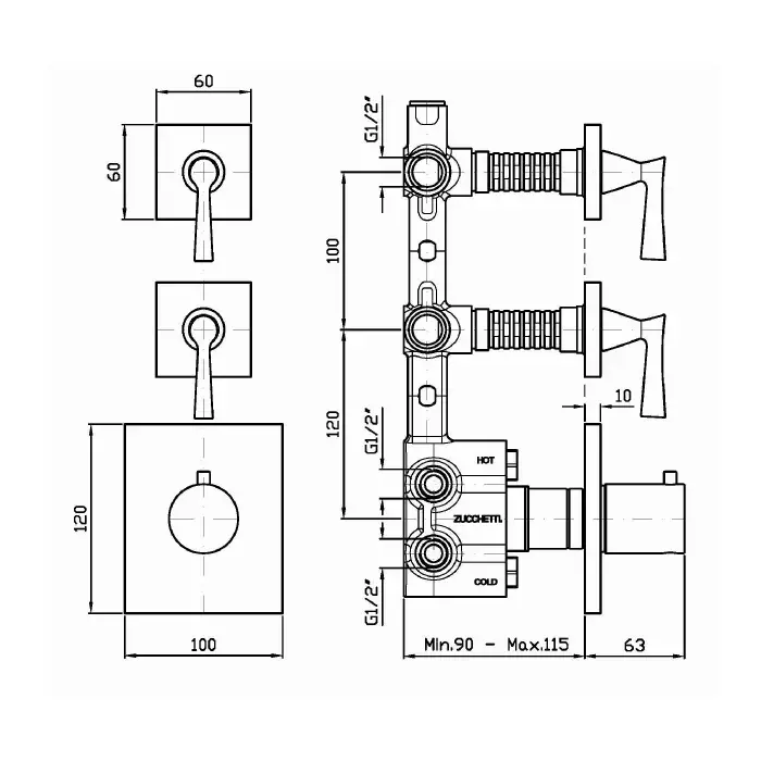 Zucchetti Bellagio Смеситель для душа встроенный, термостат, с 2-мя зап. клап., цвет: хром ZB2660