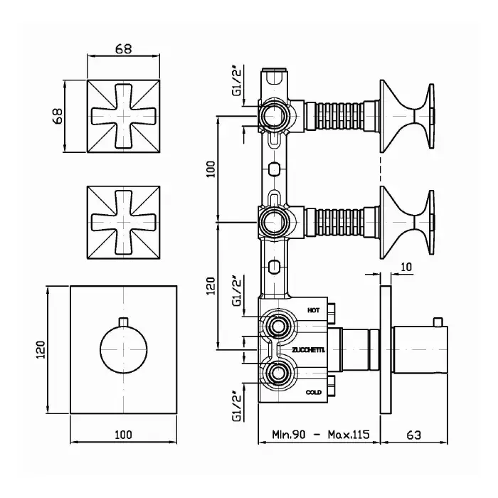 Zucchetti Bellagio Смеситель для душа встроенный, термостат, с 2-мя зап. клап., цвет: хром ZB1660