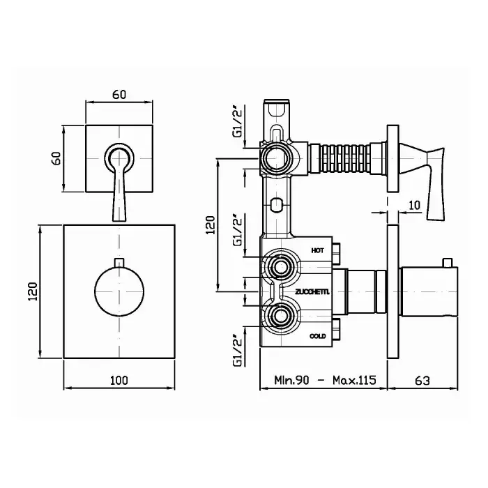 Zucchetti Bellagio Смеситель для душа встроенный, термостат, с запорным клапаном, цвет: хром ZB2659