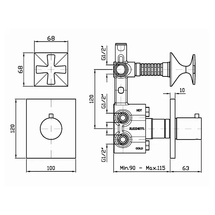 Zucchetti Bellagio Смеситель для душа встроенный, термостат, с запорным клапаном, цвет: хром ZB1659