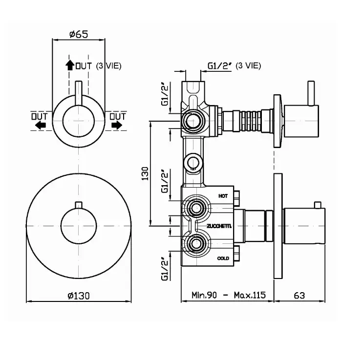 Zucchetti Closer Смеситель для душа встроенный, термостатический, цвет: хром ZP1646
