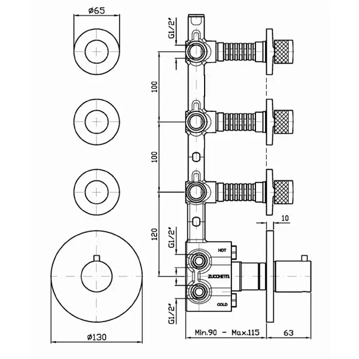 Zucchetti IsyStick Смеситель для душа встроенный, термостатический, 4 ручки, цвет: хром ZD1662