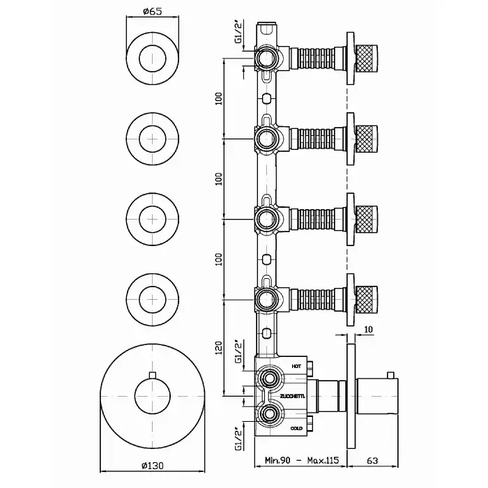 Zucchetti IsyStick Смеситель для душа встроенный, термостатический, 4 ручки, цвет: хром ZD1662