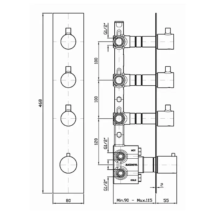 Zucchetti Pan Смеситель для душа встроенный, термостат, с 2-мя зап. клапанами, цвет: хром ZP8660