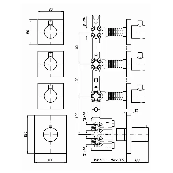 Zucchetti Pan Смеситель для душа встроенный, термостат, с 4-мя зап. клапанами, цвет: хром ZP8662