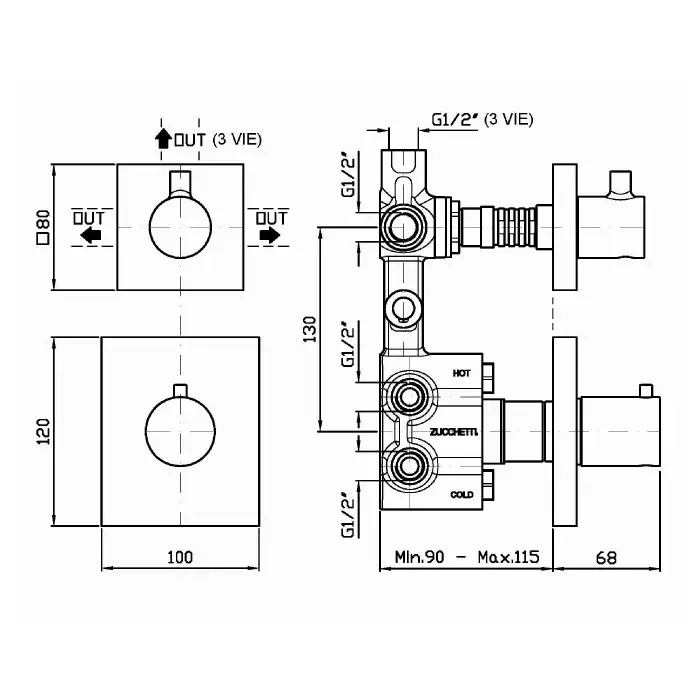 Zucchetti Pan Смеситель для душа встроенный, термостат, с 2-мя зап. клапанами, цвет: хром ZP8660