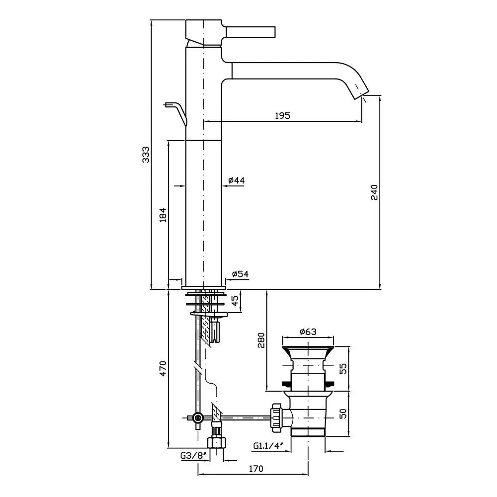 Zucchetti Pan Смеситель для раковины однорыч., на 1 отв., с донн. клап., цвет: черный мат. ZP6218.N1