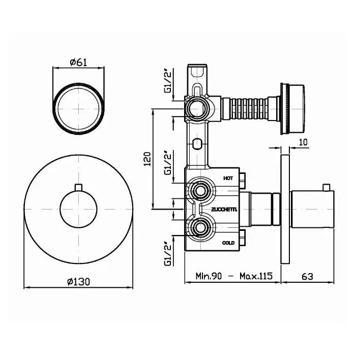 Zucchetti Savoir Смеситель для душа встроенный, термостат, с запорным клапаном, цвет: хром ZSA659.CC