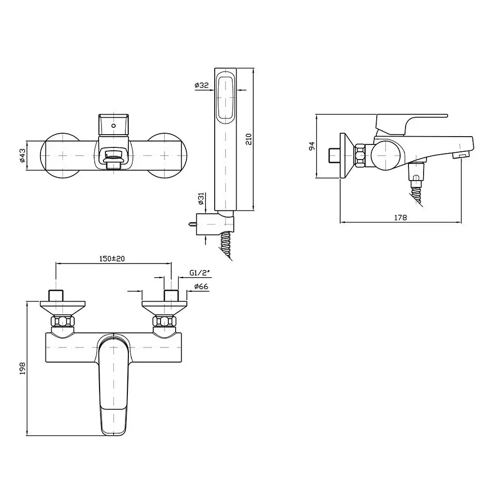 Zucchetti Wind Смеситель для ванны и душа, на 2 отв., однорычажный, цвет: хром ZWN103