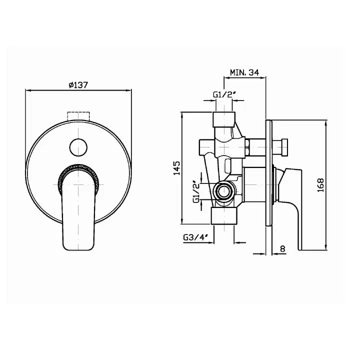 Zucchetti Wind Смеситель для ванны и душа встроенный, однорычажный, цвет: хром ZWN134