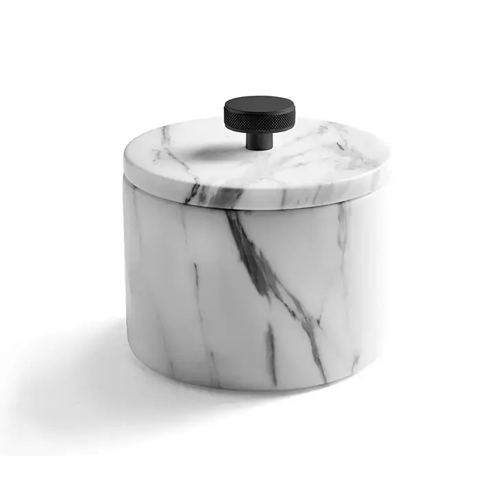 3SC APUANA 2.0 Баночка универсальная, D=8,5/h12 см, с крышкой, настольная,цвет: мрамор Bianco Statuario/черный матовый
