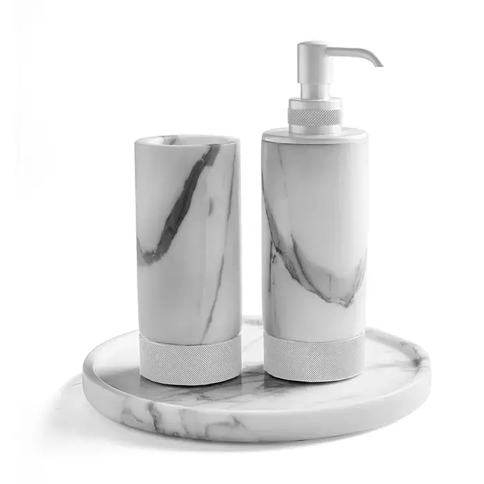 3SC Apuana 2.0 Комплект: стакан, дозатор и лоток, цвет: мрамор Bianco Statuario/белый матовый