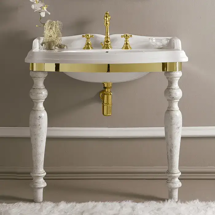 3SC Consolle Консоль Firenze 90х56хh97см, с раковиной LA02 и сифоном, напольный, цвет: золото 24к. Lucido