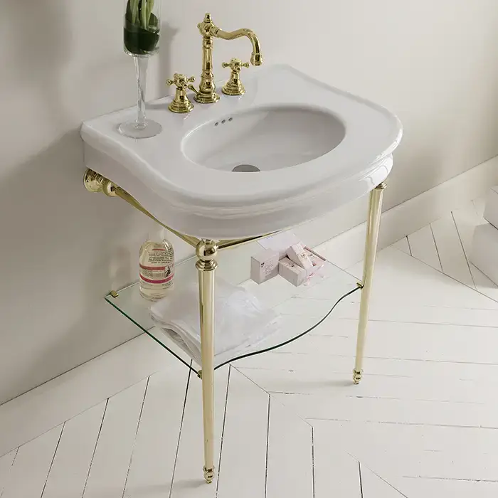 3SC Consolle Консоль Florian 70х52хh86см, с раковиной LA11, сифоном и стекл.полочкой, напольный, цвет: золото 24к. Lucido
