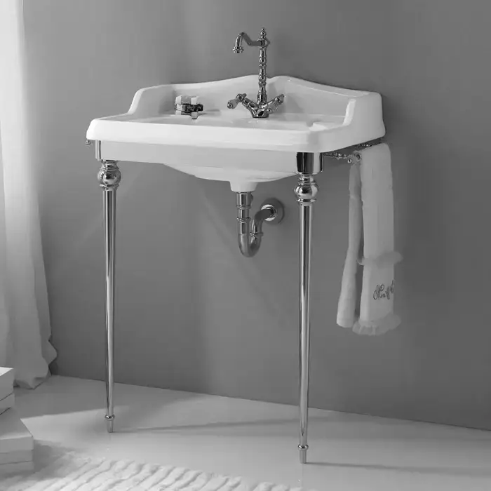 3SC Consolle Консоль Денди 85х54хh104см, с раковиной LA01, сифоном и полотенцедердателями, напольная, цвет: хром