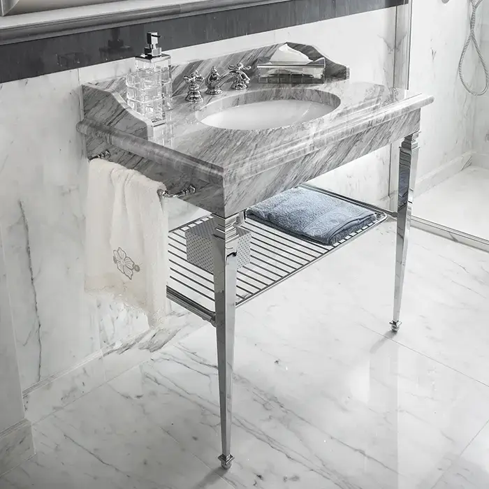3SC Consolle Консоль Денди 85х54хh104см, с раковиной LA01, сифоном и полотенцедердателями, напольная, цвет: хром
